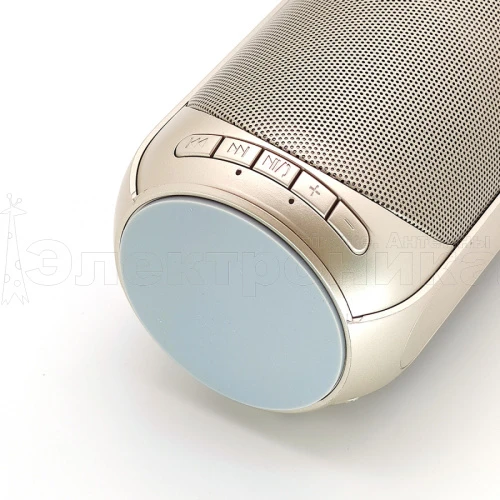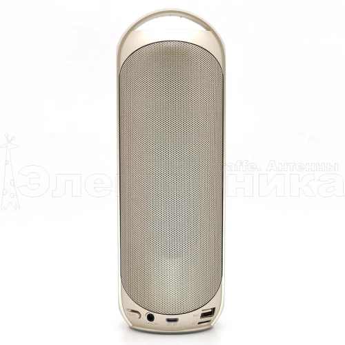 Bluetooth: есть Версия Bluetooth: 5.0 FM: есть USB: есть AUX: есть TF: есть Дисплей: нет Встроенный аккумулятор: 1.2 А Встроенный микрофон: есть Мощность (MAX): 10 Вт Цвет: золото Размер: 205*70*70 мм Материал: пластик Комплектация: кабель ЗУ microUSBУ; кабель AUX